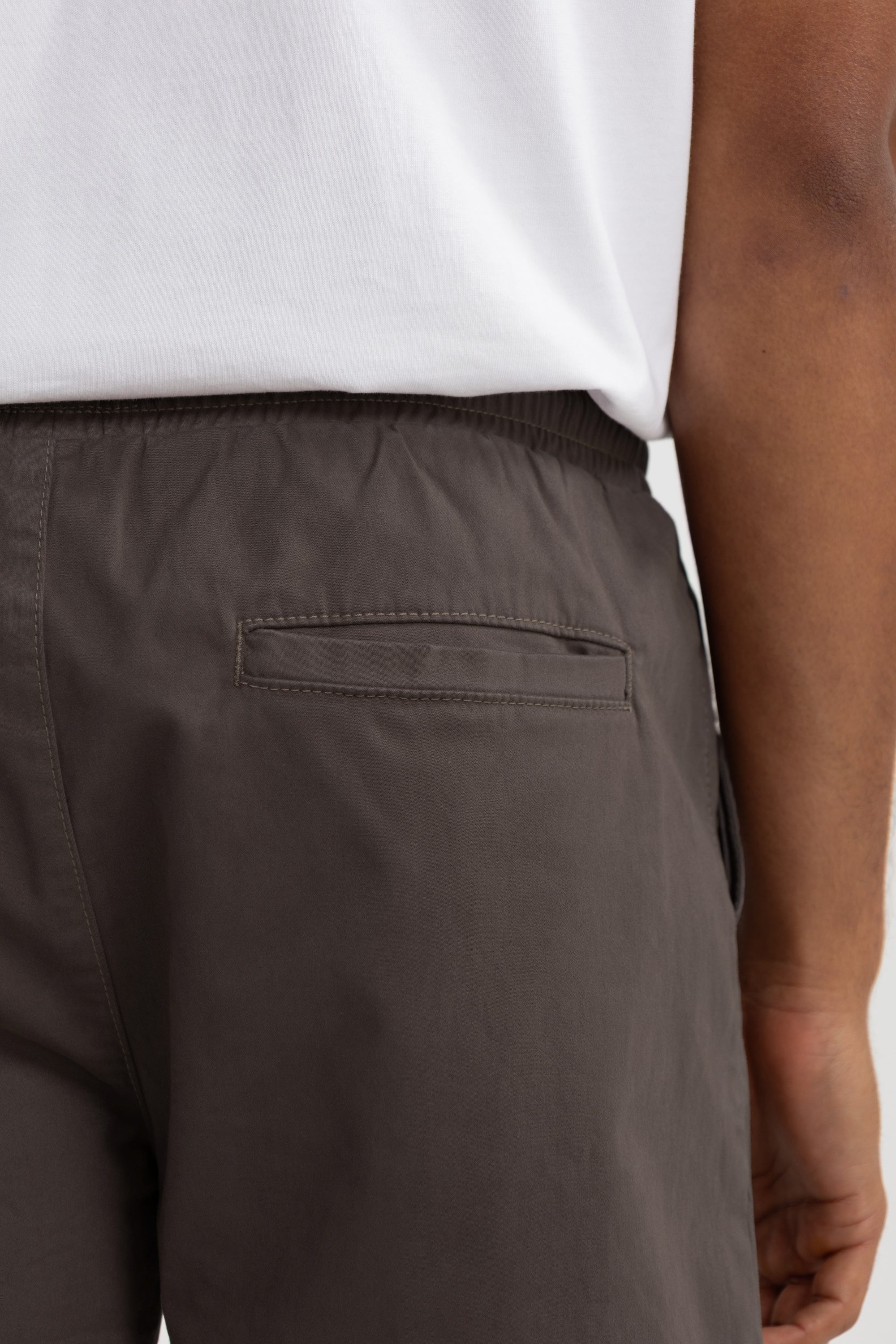 • Elasticated waistband with a white contrast cotton drawcord