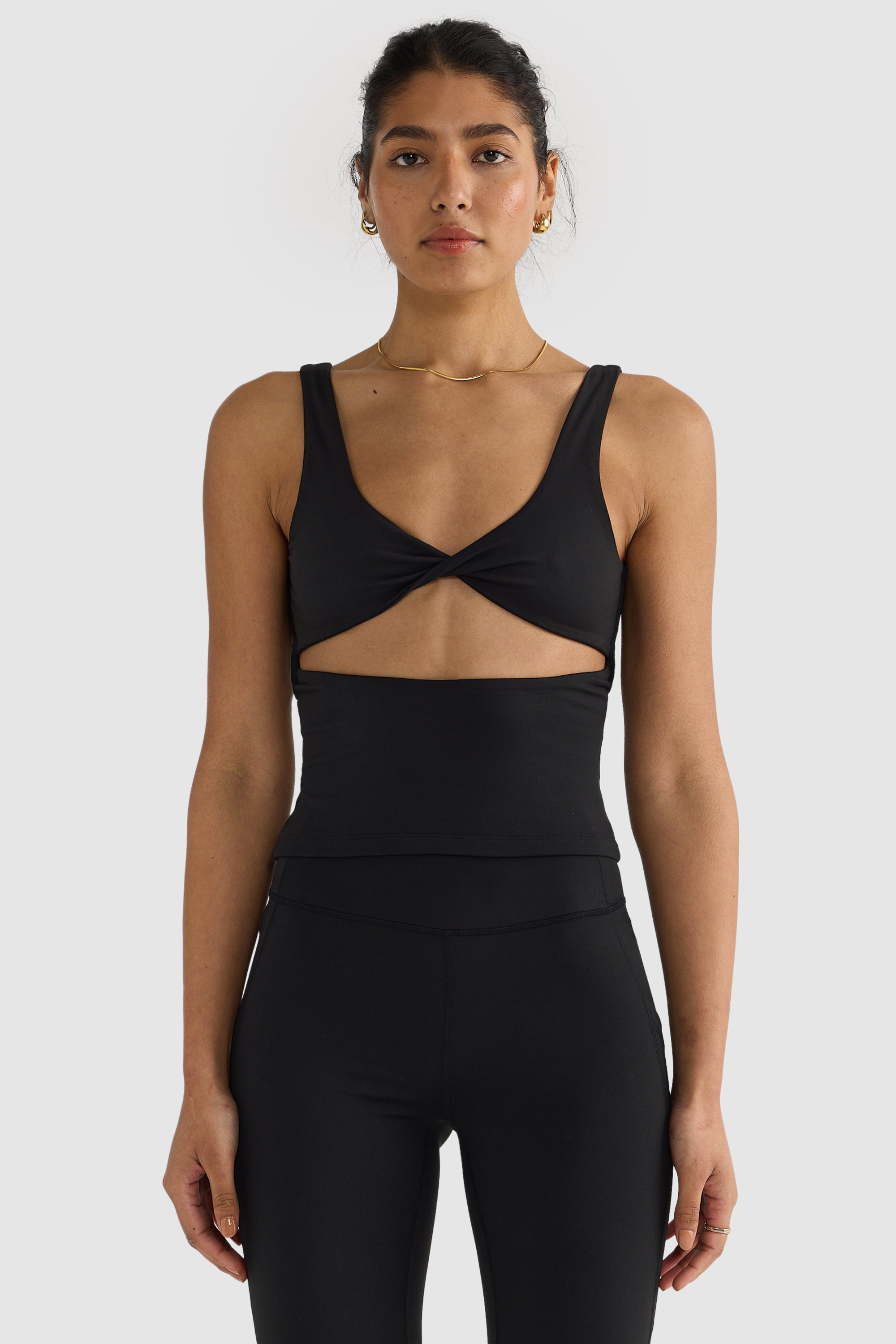 The Eva Reversible Twist Top hugs the body for a flattering and secure fit, perfect for the gym or daily wear.