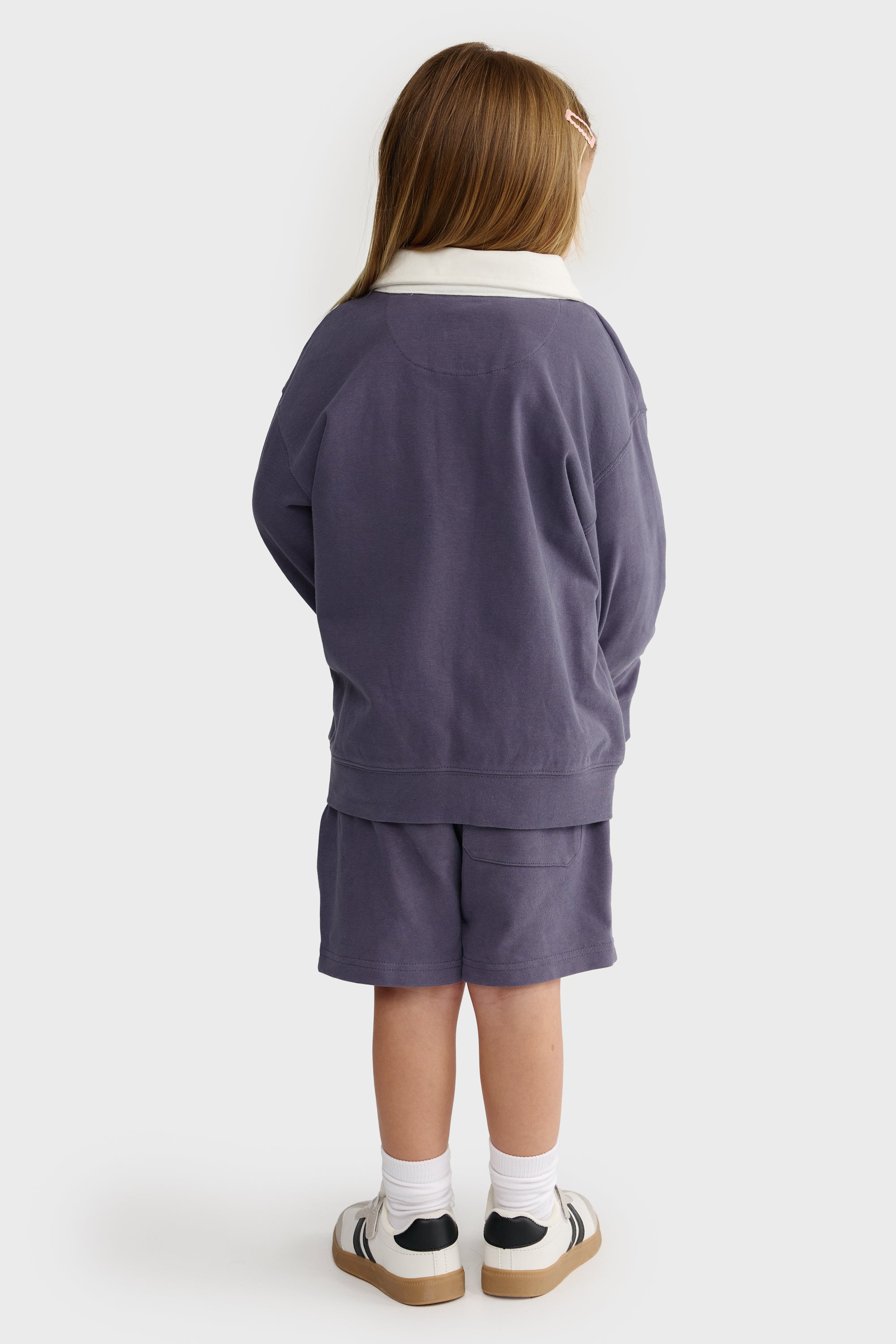 - Contrast twill rugby collar with button placket