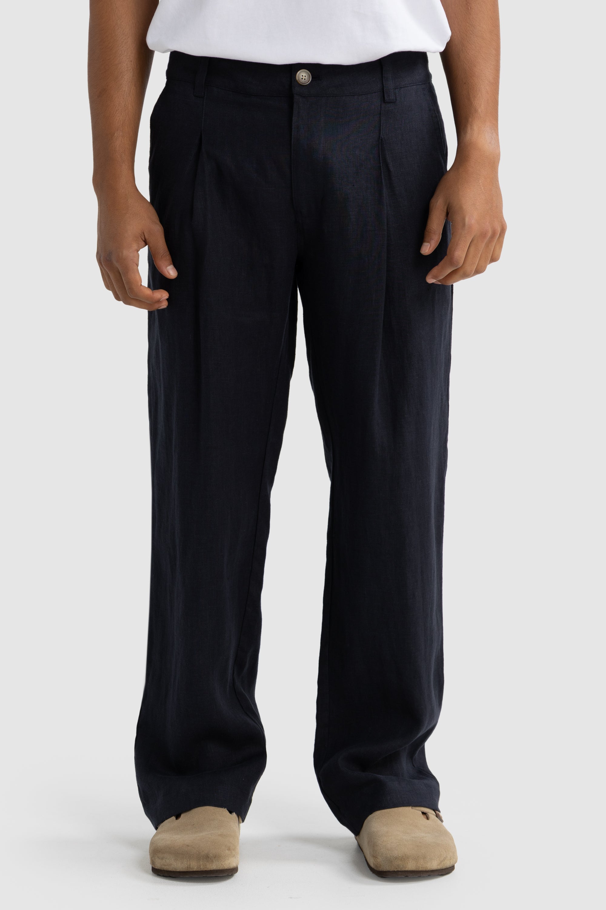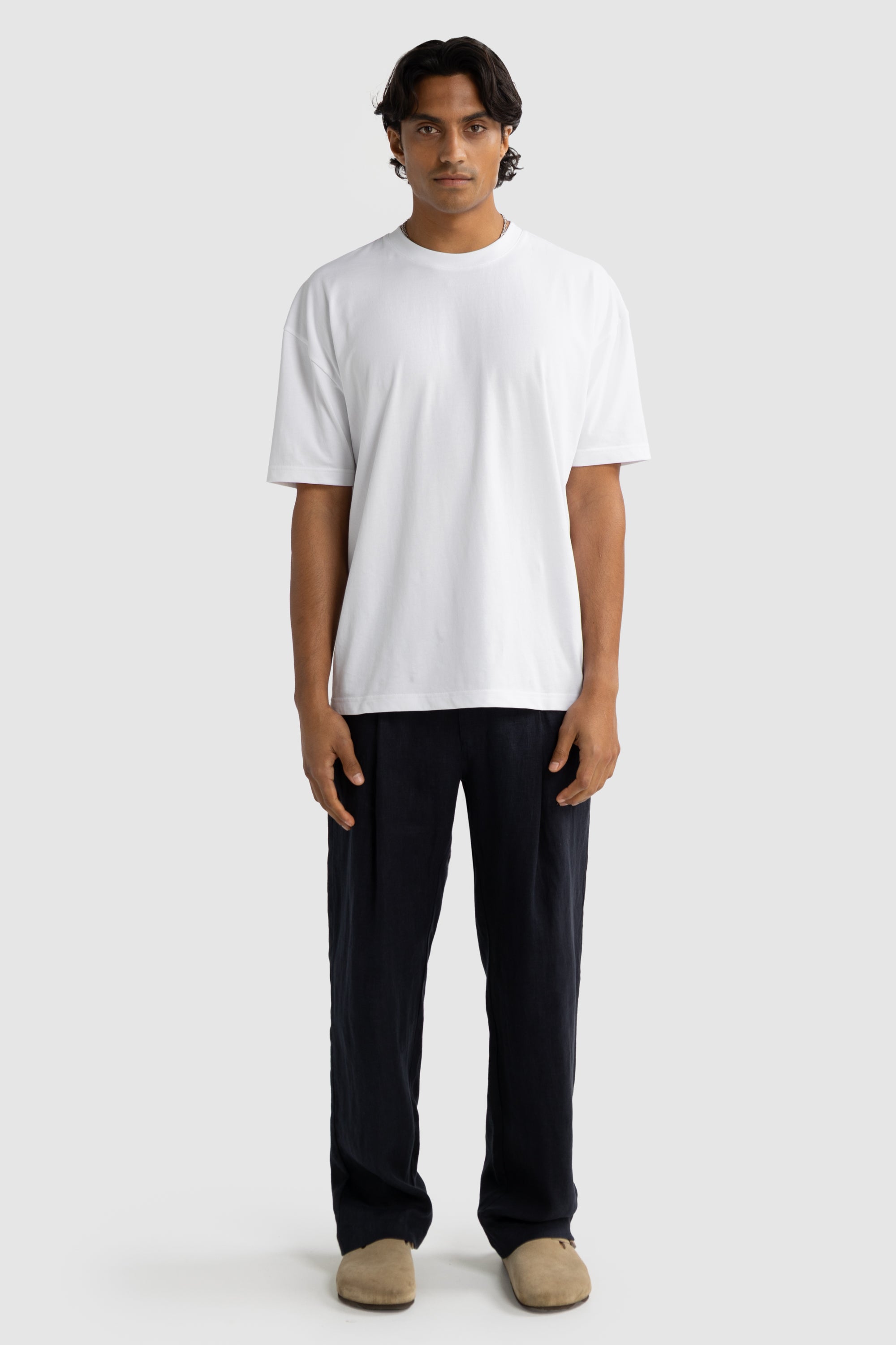 Our Tailored Linen Pants are a staple for your summer wardrobe. Crafted from 100% washed linen, they follow our signature relaxed fit—striking the perfect balance between comfort, quality, and tailored style. Pair them with one of our Henderson Box Fit T-Shirts for an effortlessly refined summer look.