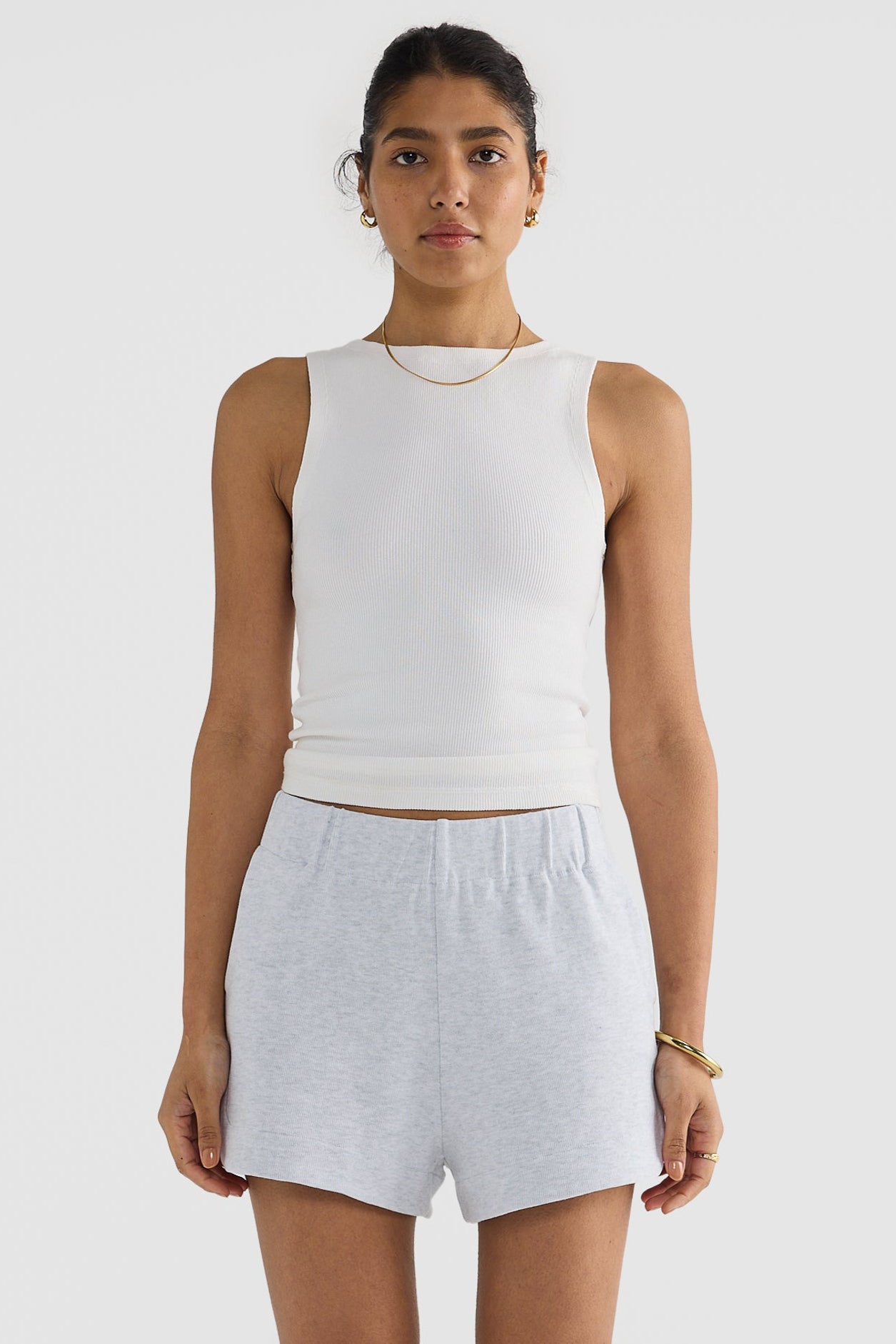 Ava Curved Hem Shorts White Marle