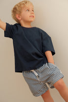 Take your kids' beachwear to the next level with Jnr Manly Navy Swim Shorts. Crafted from 100% recycled polyester for extended durability and sustainability. The elastic waistband and drawstring provide a comfortable fit, and internal fine mesh briefs ensure maximum breathability.