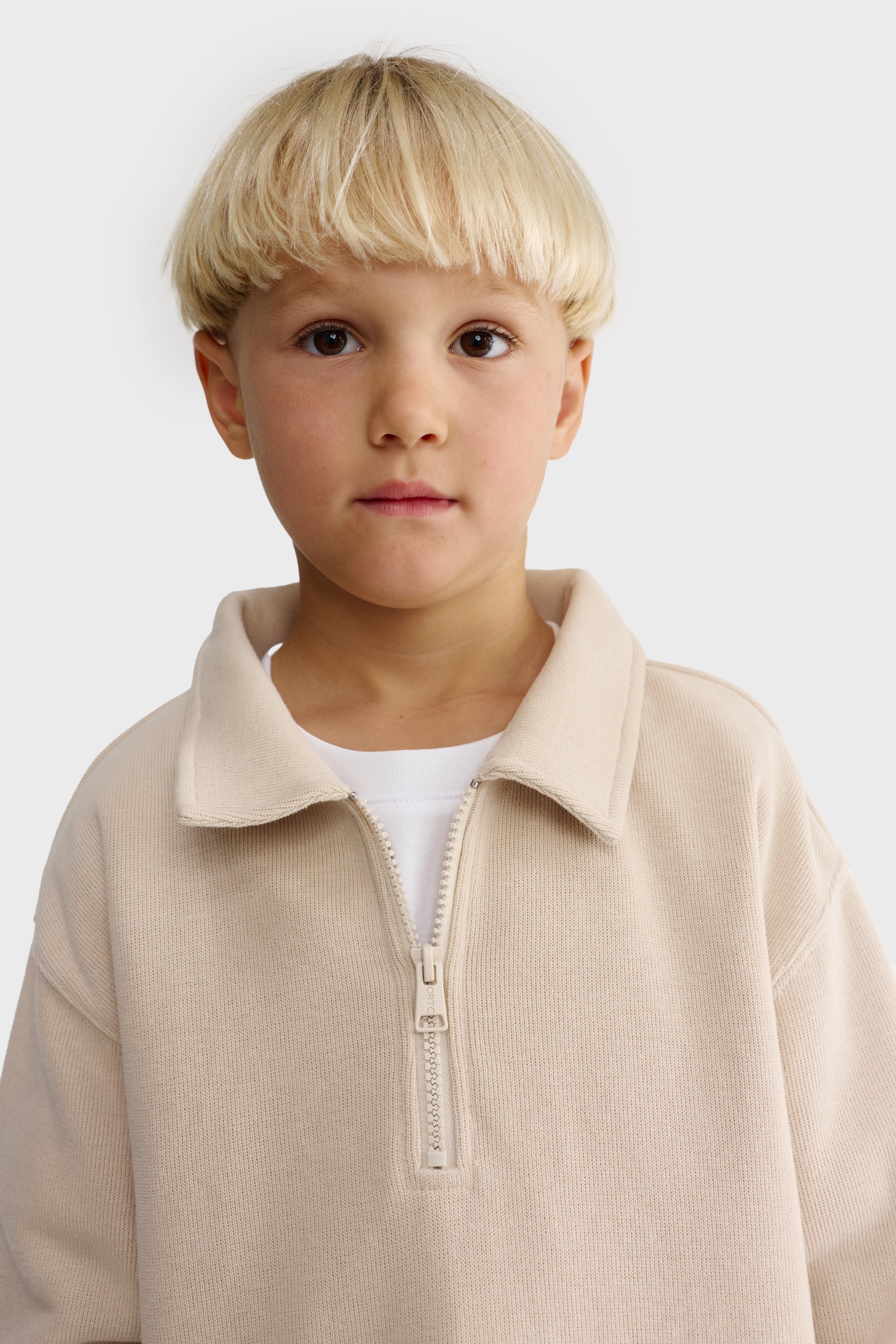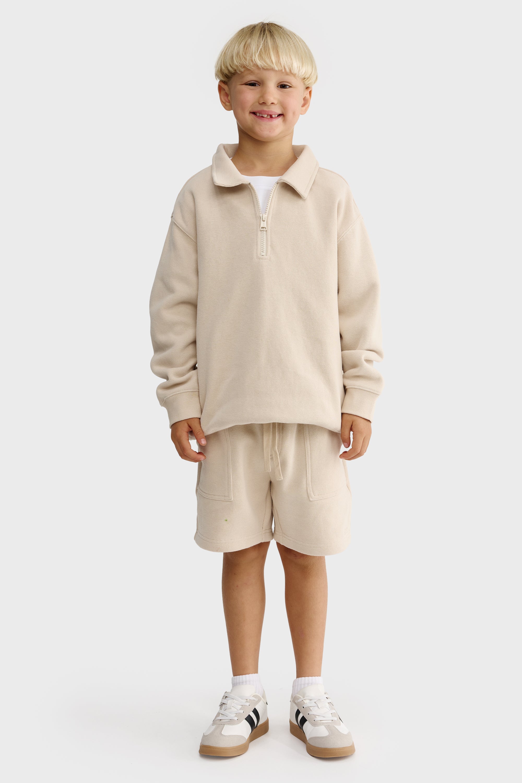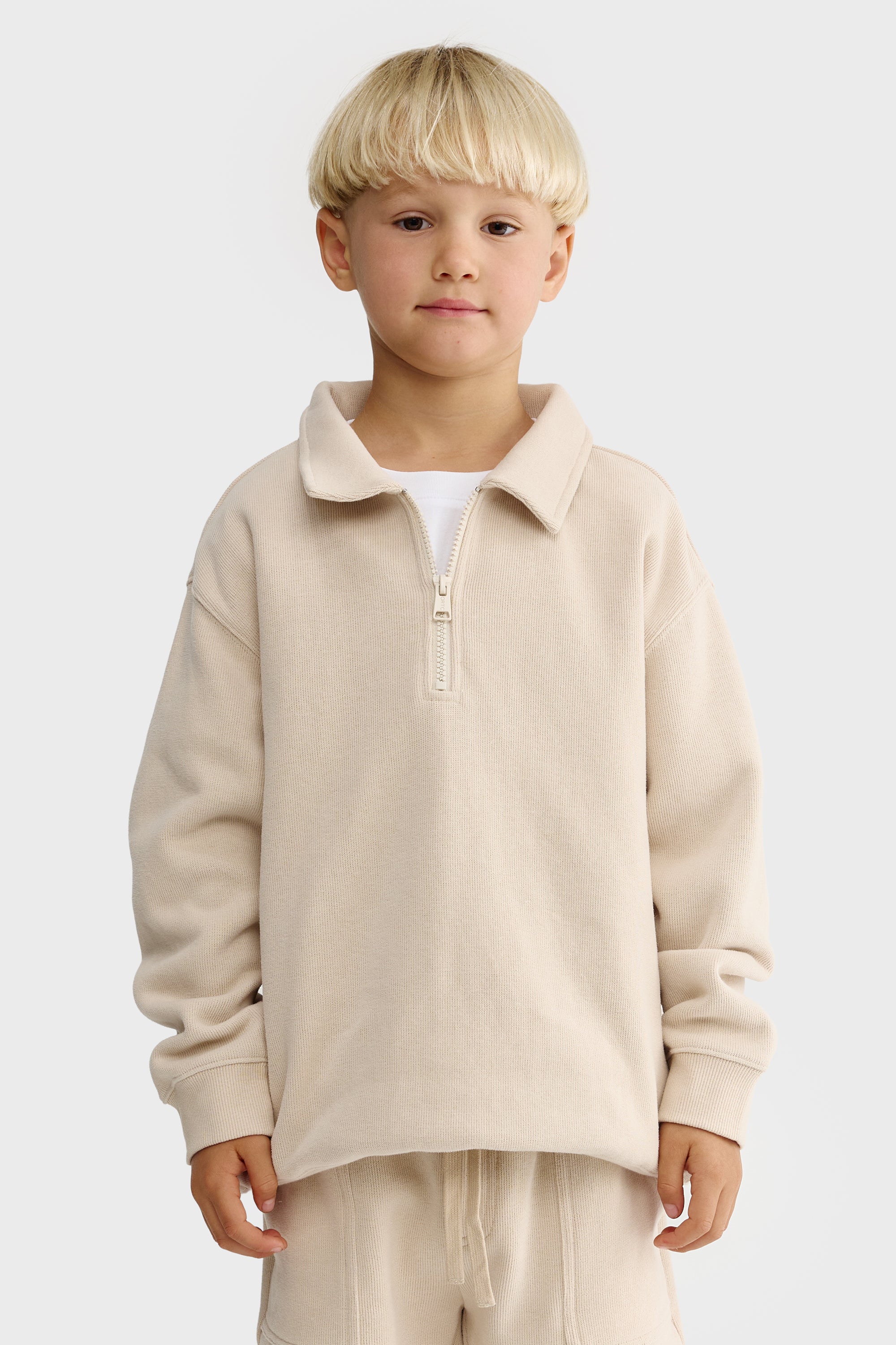 Jnr Ace Fold Collar Quarter Zip Bone