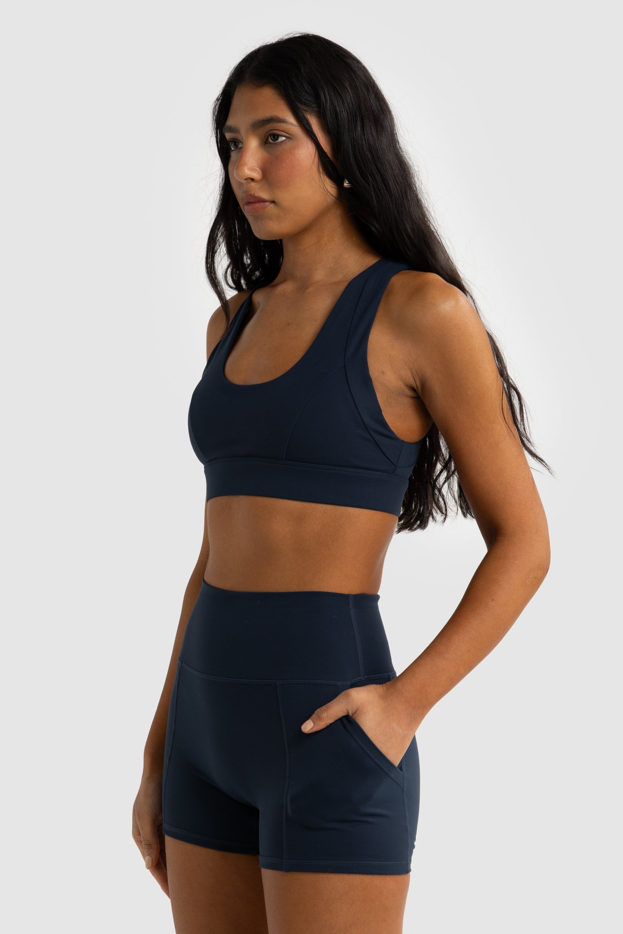 Our Eva Shorts feature a double-layered waistband and subtle tonal branding on the centre back, along with cutaway pockets for added convenience.