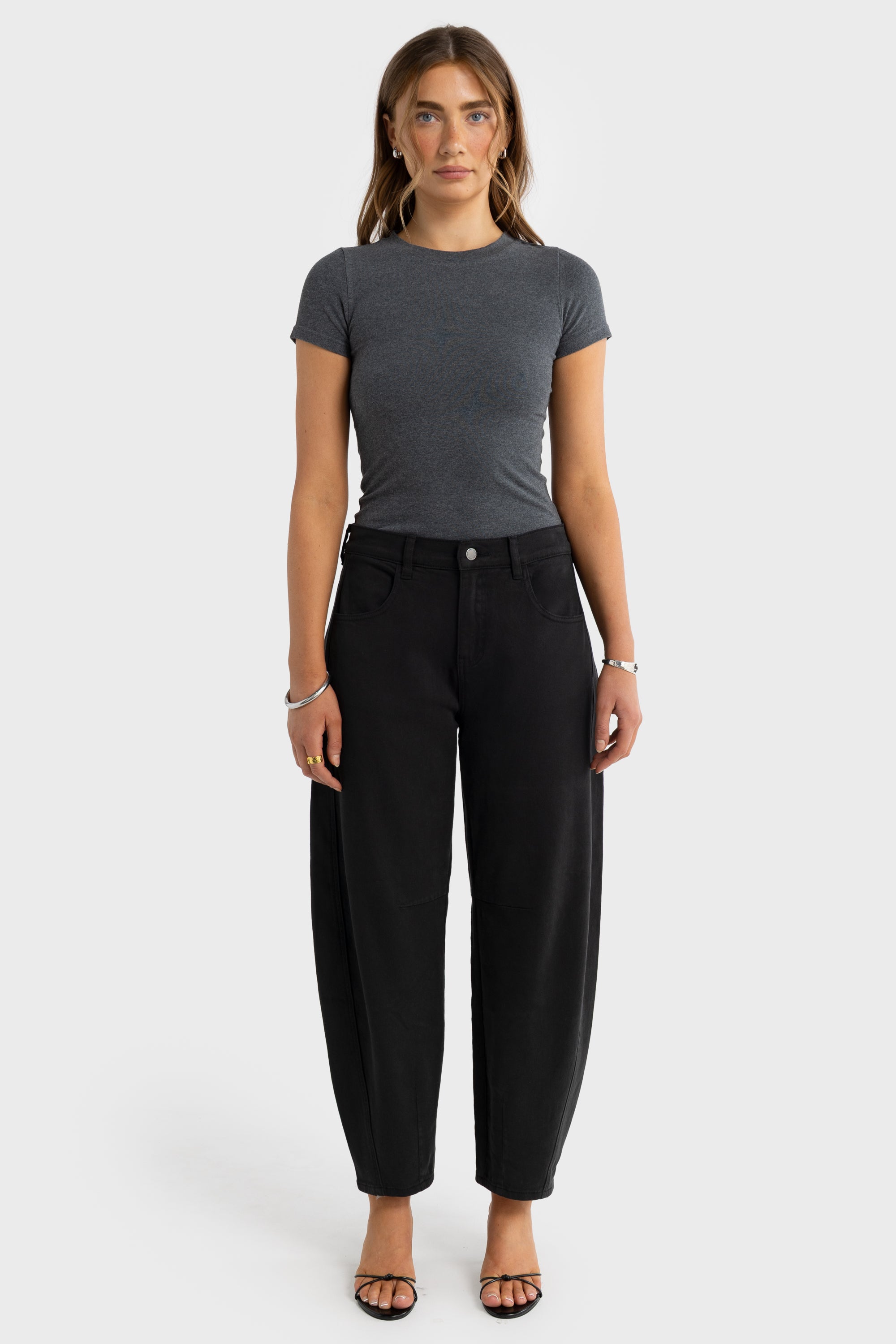 The Lottie Barrel Leg Pant is a modern update to our signature Lottie straight denim. This mid-rise style features a relaxed barrel-leg silhouette that tapers subtly at the ankle for a contemporary, structured shape. Designed to sit fitted through the waist/hip with volume through the leg, it offers an elevated yet effortless feel. A versatile wardrobe staple.