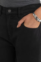 • Zip fly with button closure