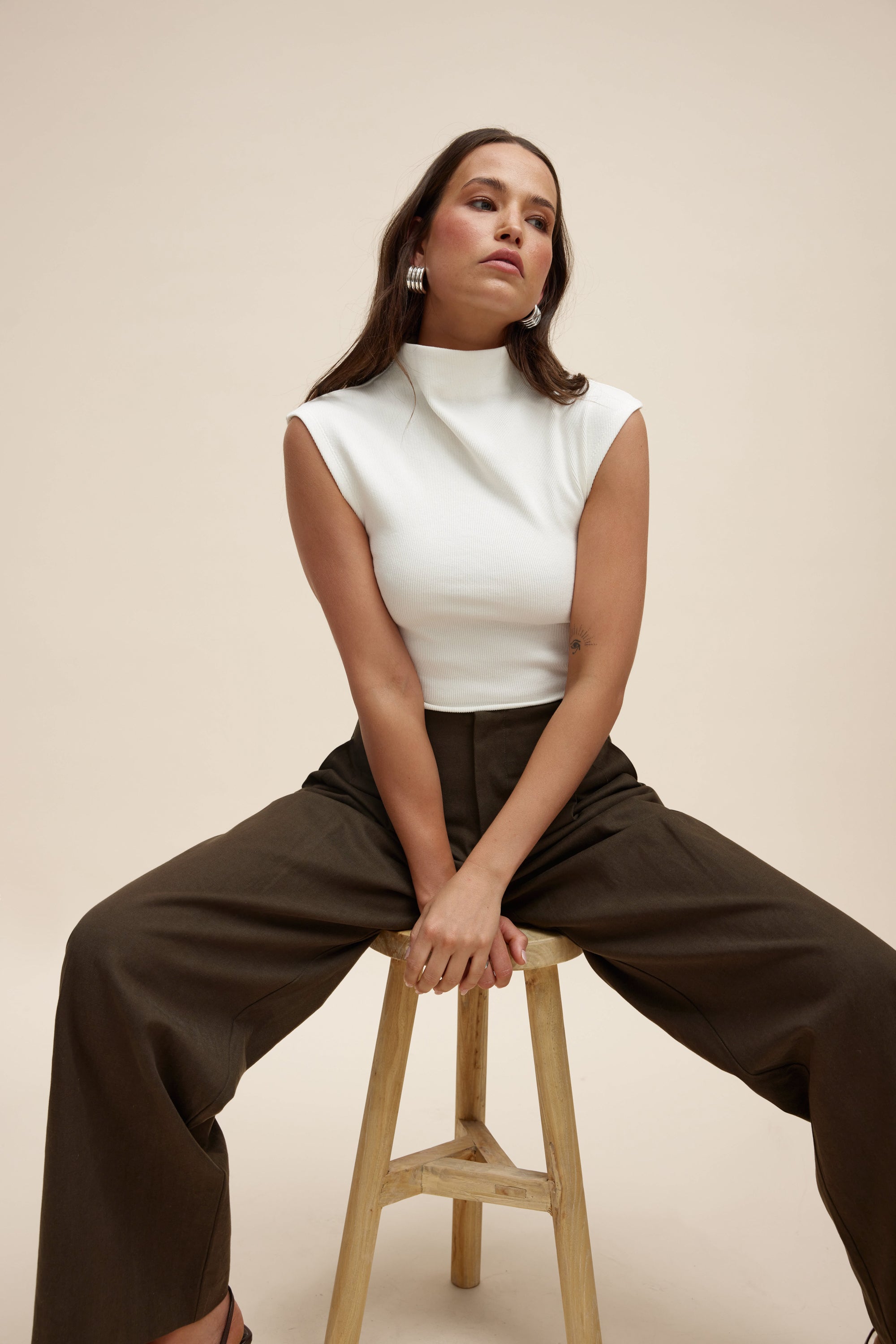 • Fitted waist with a wide leg profile
