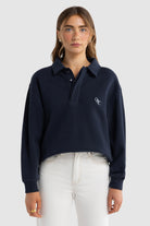 Ava Monogram Polo Neck Sweater Navy