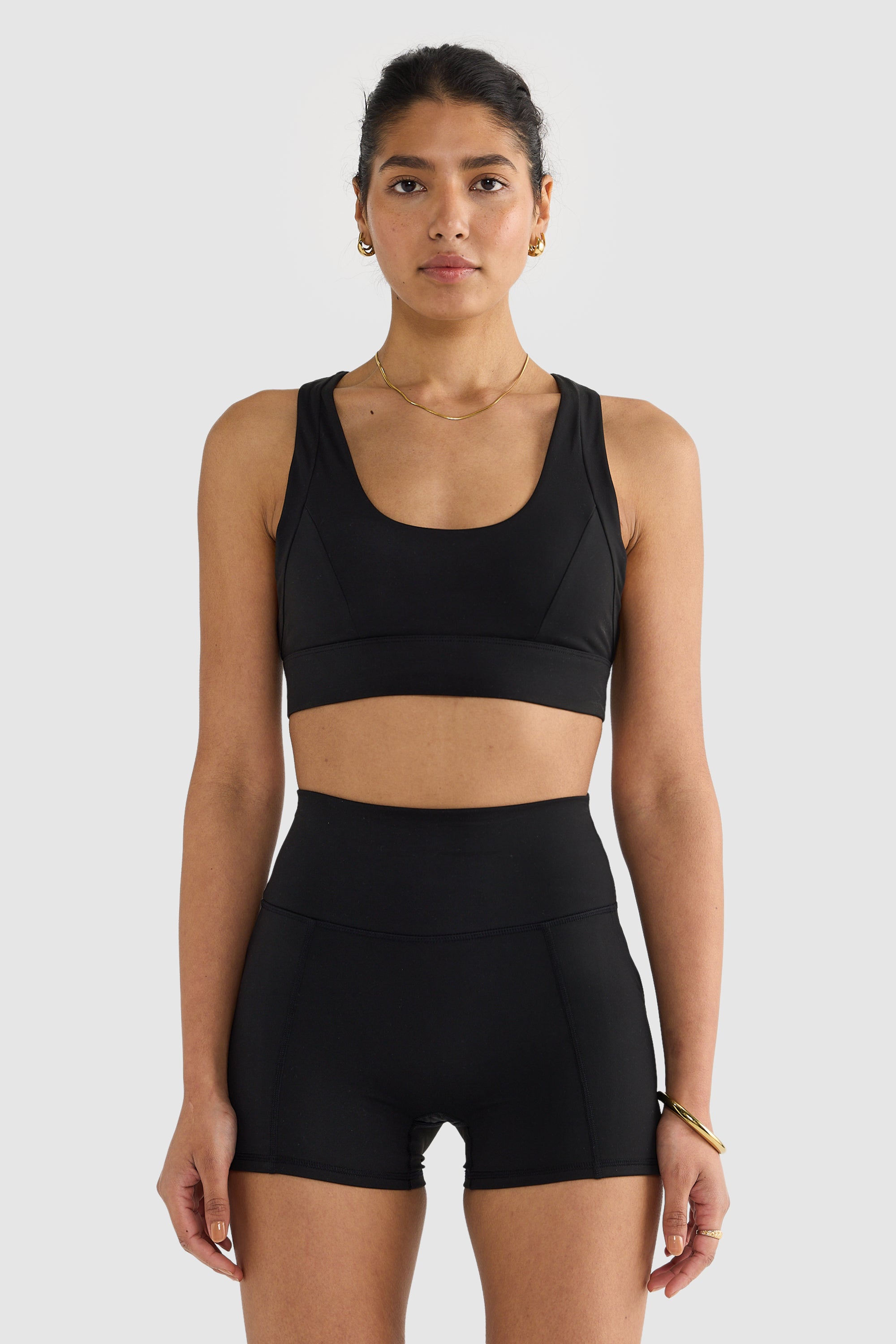 Designed with a firm support under-bust band, the Eva Crop Top features removable cups and adjustable back bra clasps, allowing for a customisable fit.