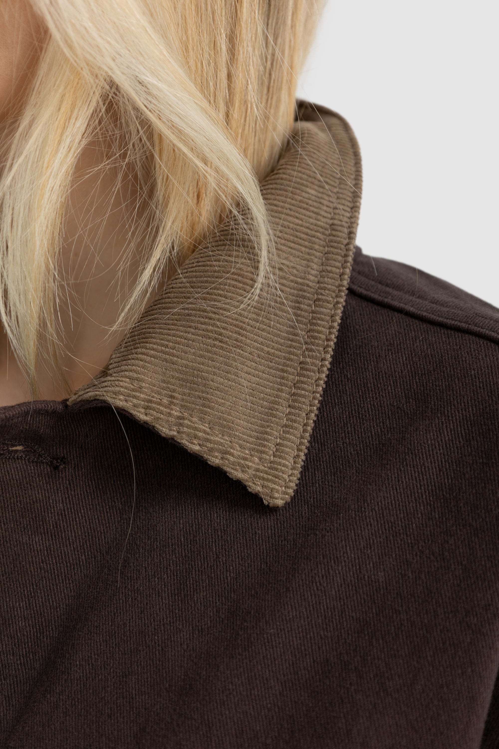 • Contrast corduroy detailing on the collar, front pocket and inside cuff