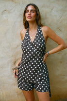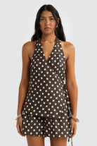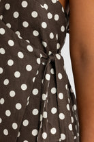 Elise Linen Wrap Top Carob Polkadot