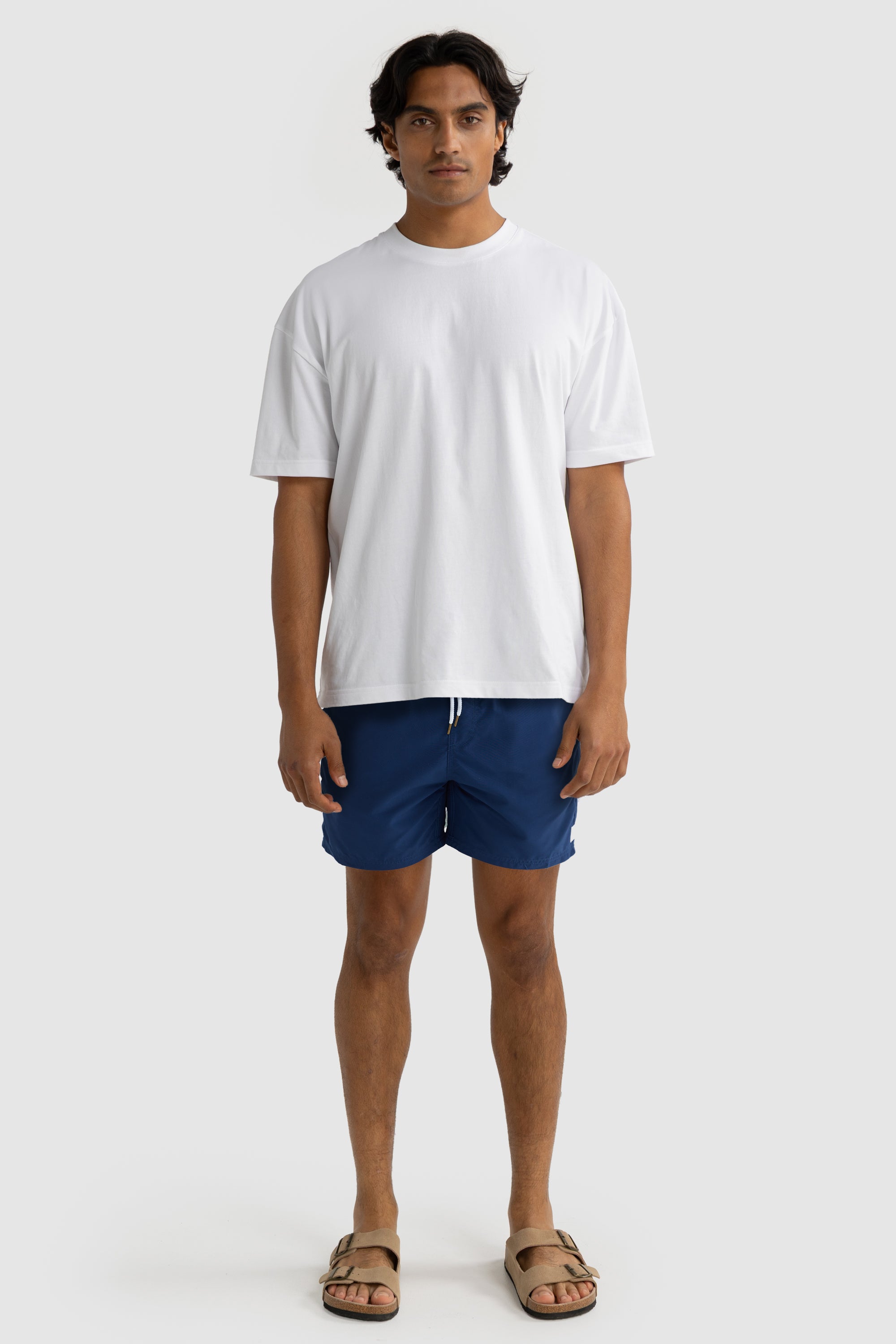 The Hyams Navy Swim Shorts are the perfect addition to your summer wardrobe. Made from 100% Recycled Polyester, these mid-length shorts are quick-drying and lightweight. The elastic waistband with drawstring provides an adjustable fit, while internal fine mesh briefs provide extra comfort. Pair with one of our Box Logo T Shirts for the perfect summer look.