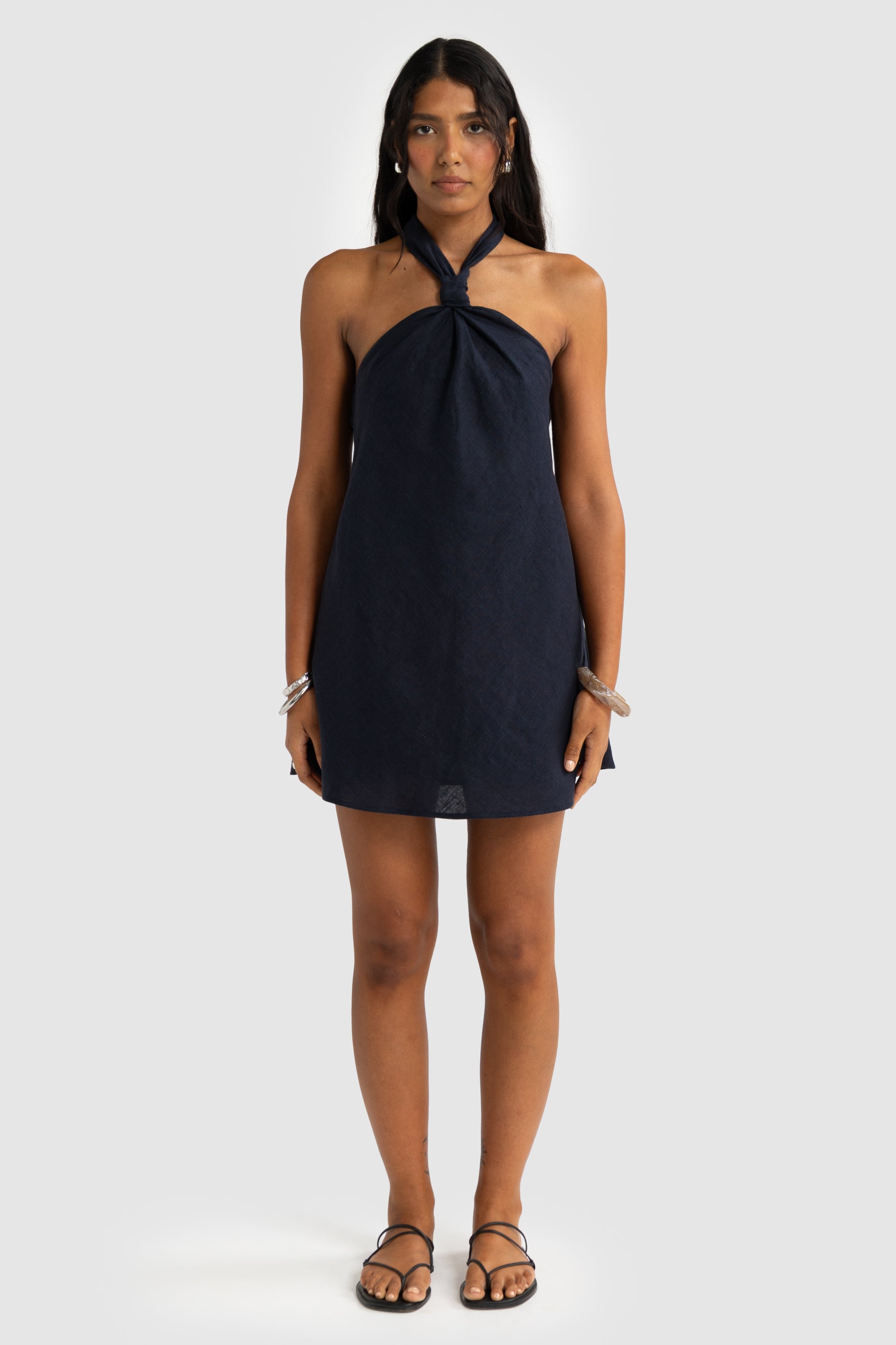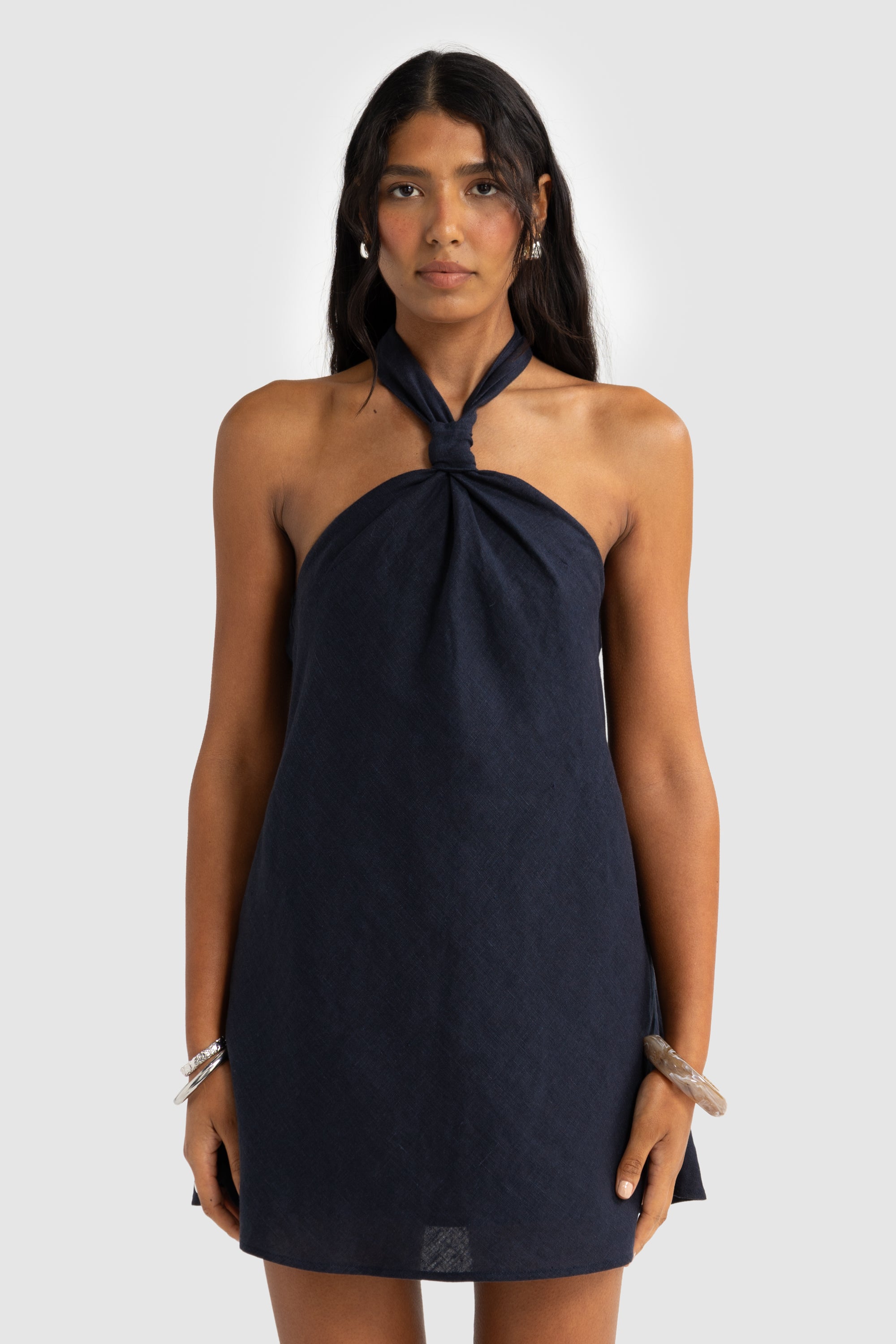 Mira Linen Halter Mini Dress French Navy