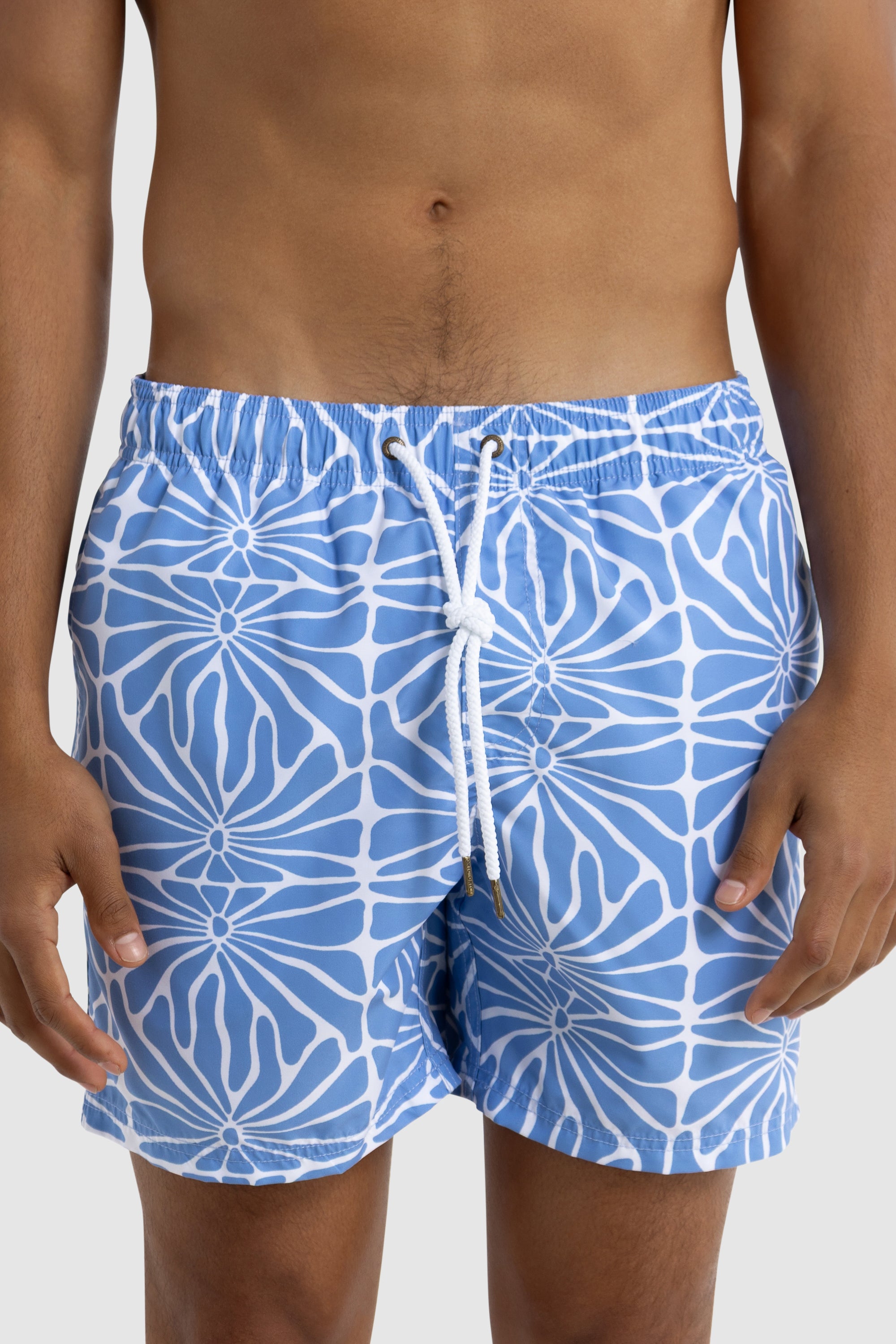 The Shelly Swim Shorts Ocean Blue are the perfect addition to your summer wardrobe. Made from 100% Recycled Polyester, these mid-length shorts are quick-drying and lightweight. The elastic waistband with drawstring provides an adjustable fit, while internal fine mesh briefs provide extra comfort. Pair with one of our Linen shirts  for the perfect summer look.