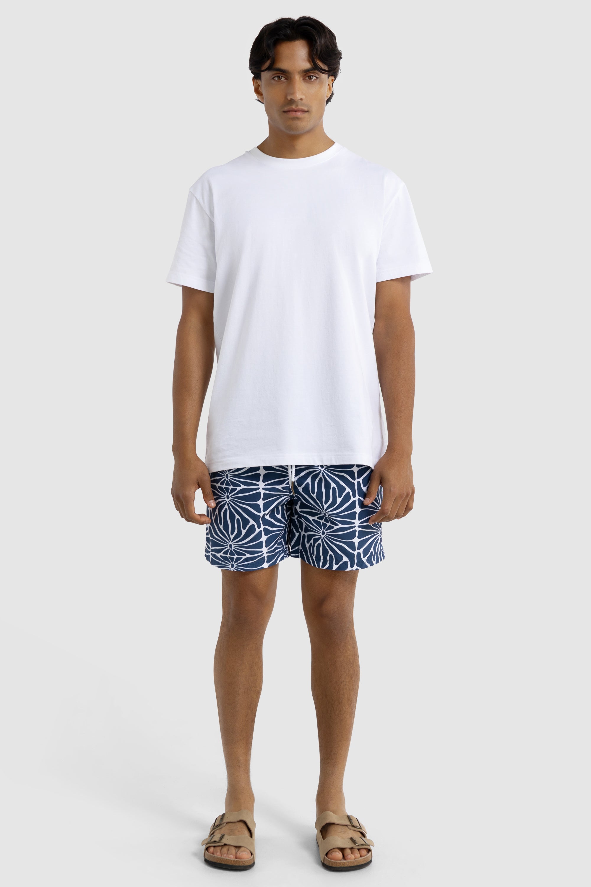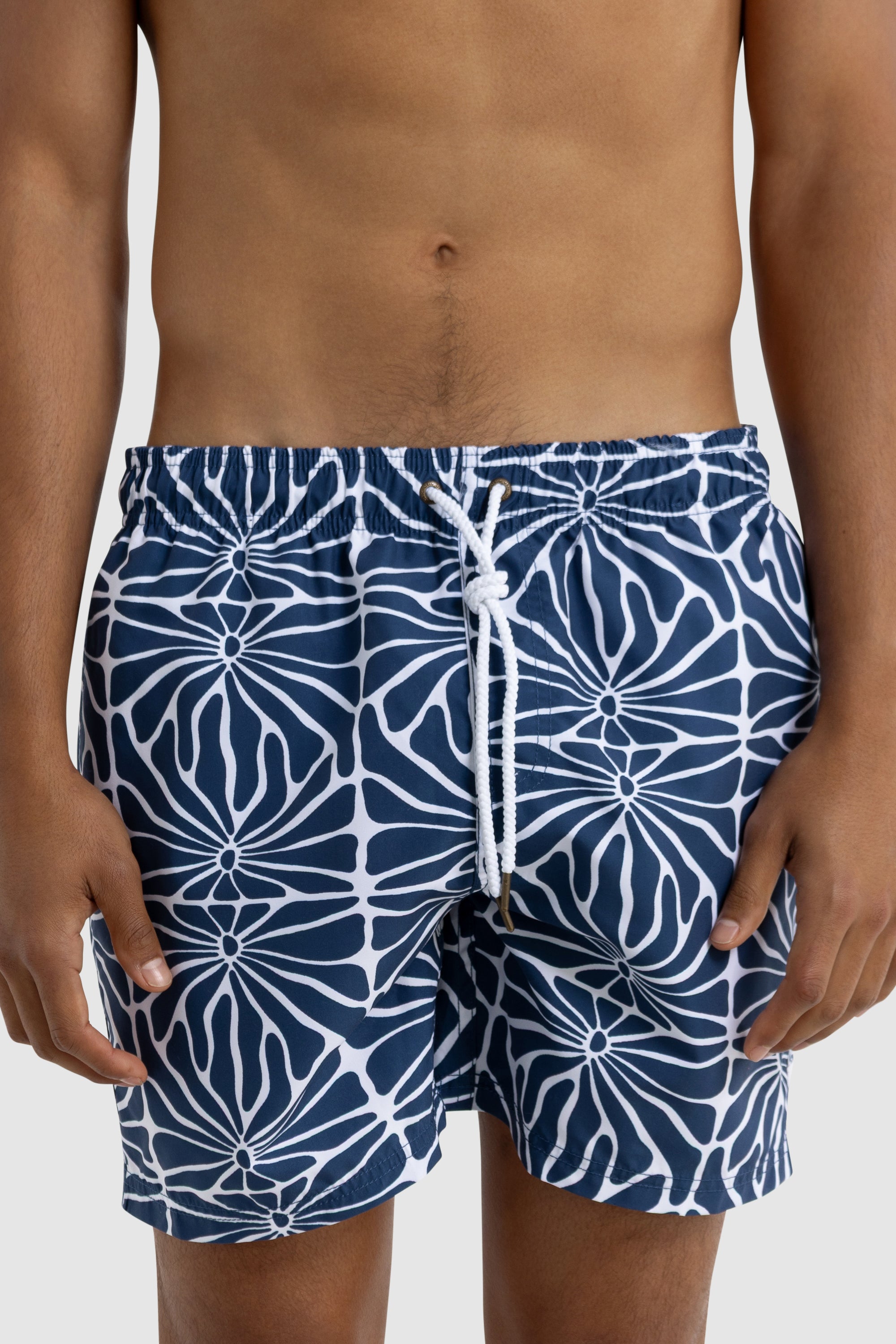 The Shelly Tropic Navy Swim Shorts are the perfect addition to your summer wardrobe. Made from 100% Recycled Polyester, these mid-length shorts are quick-drying and lightweight. The elastic waistband with drawstring provides an adjustable fit, while internal fine mesh briefs provide extra comfort.