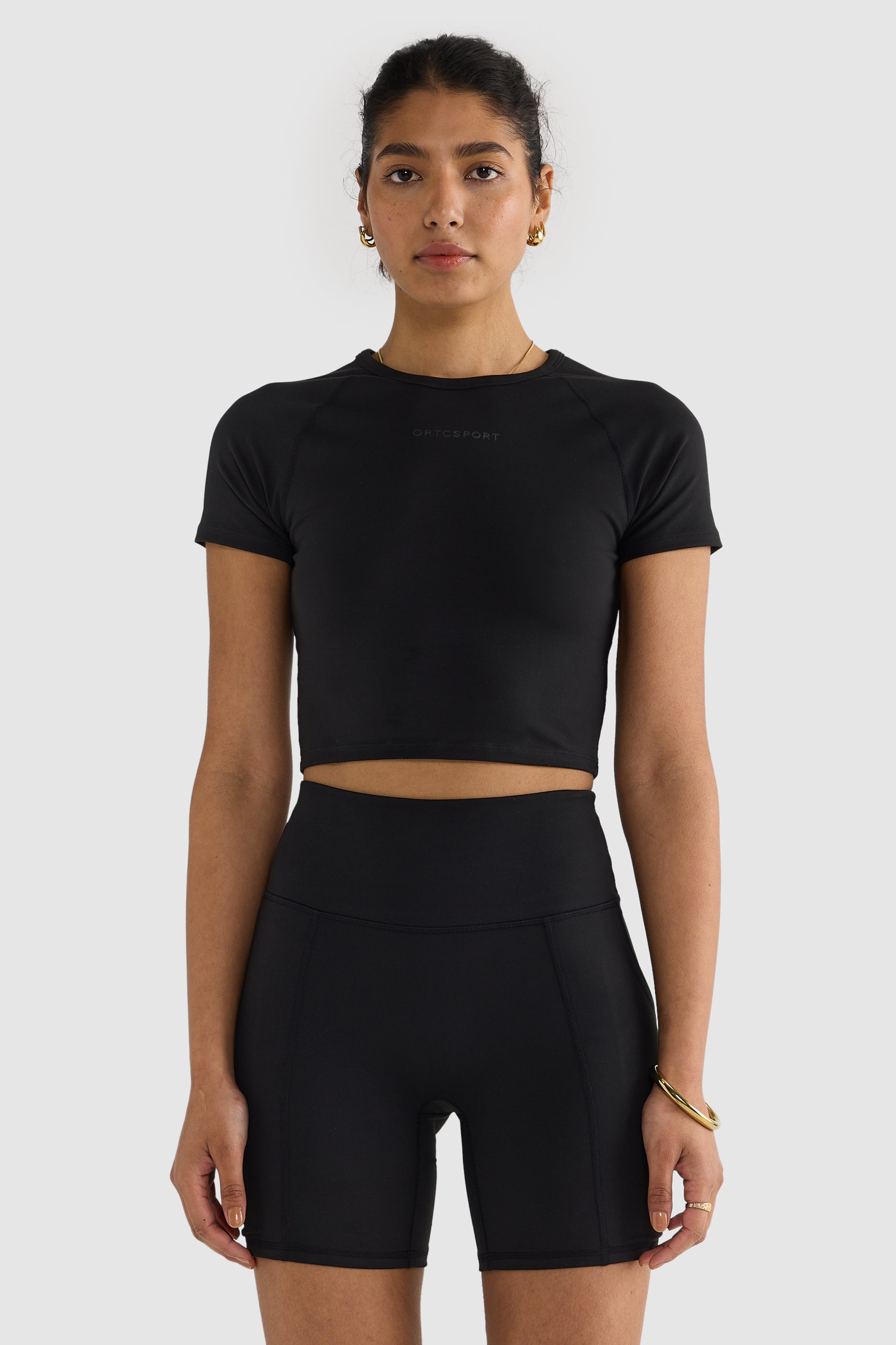Our Eva Short Sleeve Crop Tops offers the perfect blend of comfort and practicality. With clean lines and tonal branding, this crop is a versatile piece designed to pair seamlessly with your everyday wardrobe.