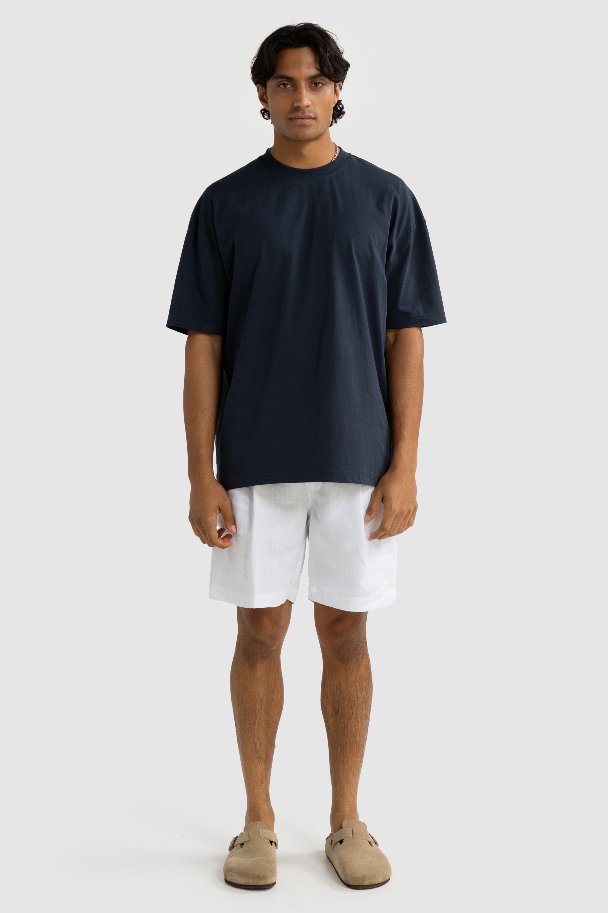 Our Tailored Linen Shorts are a staple for your summer wardrobe. Crafted from 100% washed linen, they follow our signature relaxed fit—striking the perfect balance between comfort, quality, and tailored style. Pair them with one of our Henderson Box Fit T-Shirts for an effortlessly refined summer look.